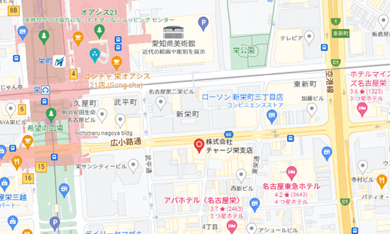 | 栄支店 | 〒460-0008 名古屋市中区栄4-2-10 KURIビル9F TEL:052-249-4133 FAX:052-249-4134 ![]() |